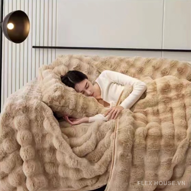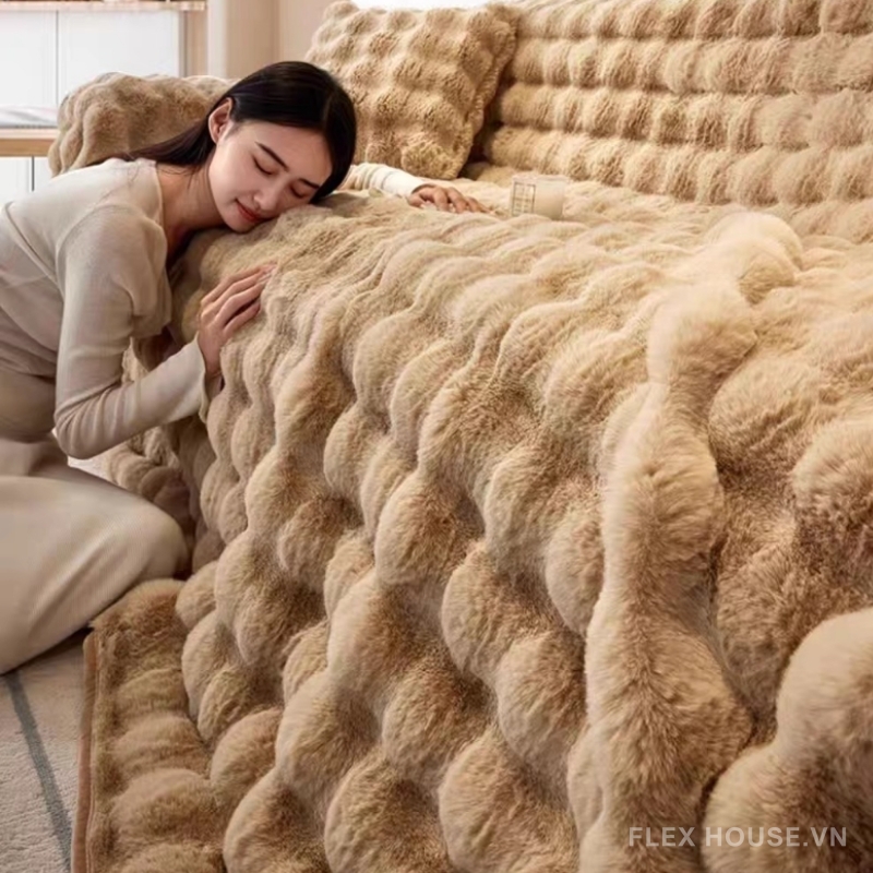 - Chất liệu nhung giả lông thỏ mềm mịn: Cảm giác êm ái, mượt mà, mang lại sự thư giãn tuyệt đối khi ngồi hoặc nằm.