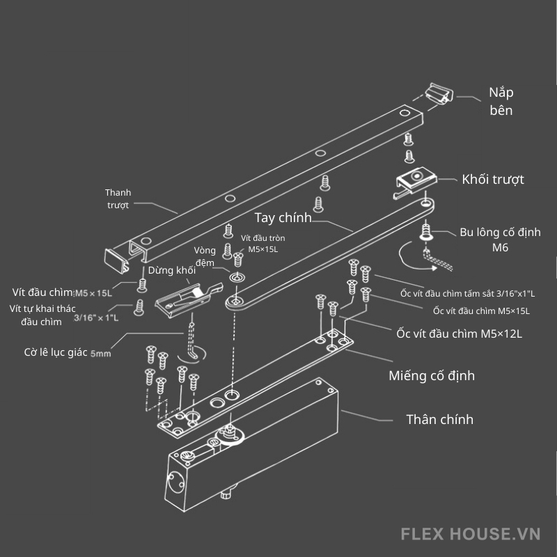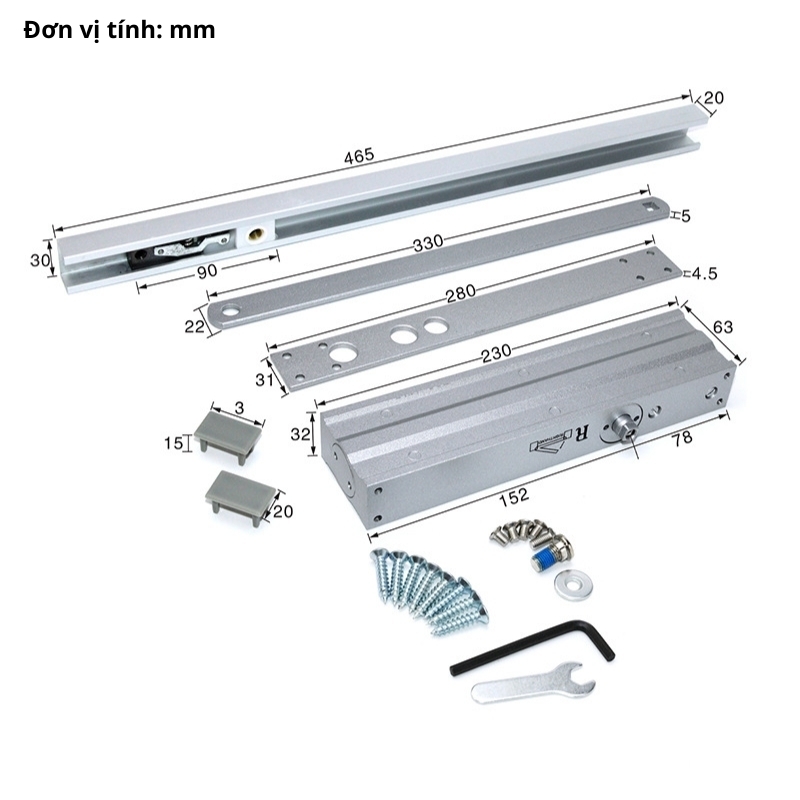 - Điều chỉnh tốc độ linh hoạt: Trang bị van chỉnh tốc độ dễ thao tác, cho phép người dùng tùy chỉnh phù hợp với trọng lượng cửa và thói quen sử dụng.