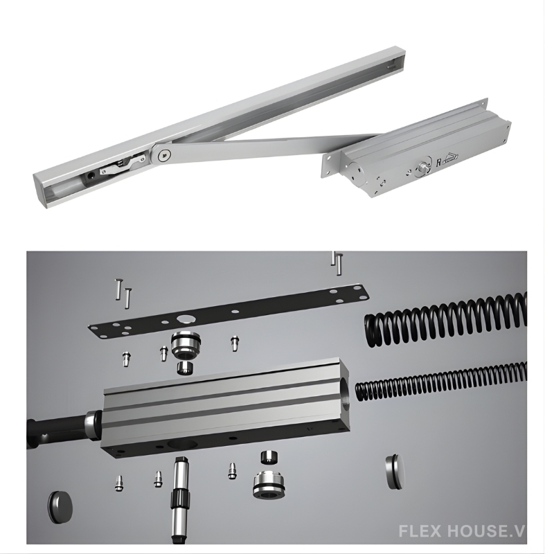 - Cơ chế thủy lực 2 giai đoạn: Cho phép điều chỉnh riêng biệt tốc độ đóng cửa ở hai pha (từ mở → gần đóng và từ gần đóng → đóng kín), giúp cửa đóng mượt, không giật, không sập mạnh.