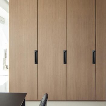 - Tay nắm âm được lắp đặt ẩn vào bên trong cánh tủ, giúp tiết kiệm diện tích