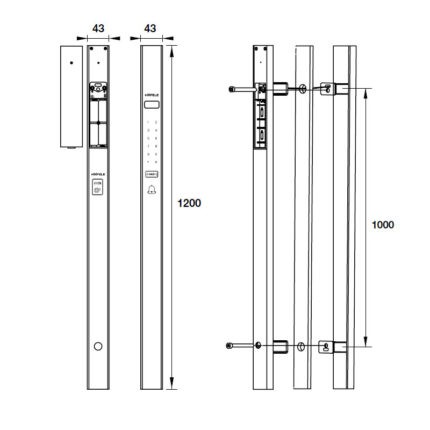 - Kích thước mặt ngoài: 43 x 23 x 1200 mm (RxSxC), Khoảng cách lỗ: 1000mm