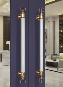 - Chế tác bằng thép không gỉ và pha lê cao cấp đảm bảo chắc chắn, kết cấu vững khi dùng tay nắm dài 1800mm