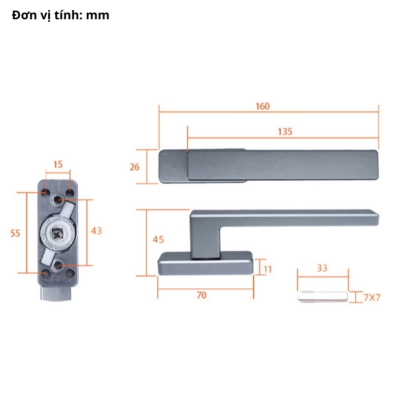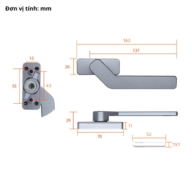 Giới thiệu Tay nắm cửa sổ nhôm thiết kế vuông hiện đại KD0727