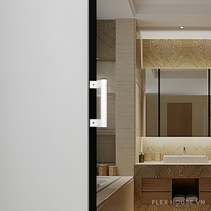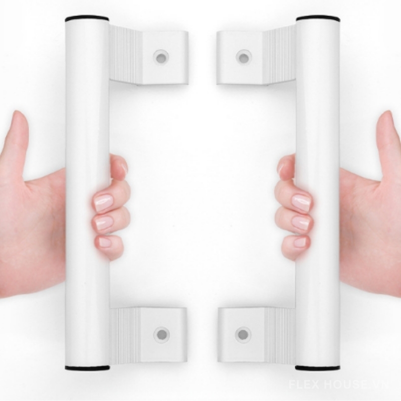 - Thiết kế công thái học: Tay cầm tròn, bề mặt mịn, khoảng cách cầm nắm hợp lý giúp đóng mở cửa trượt nhẹ và chắc tay.