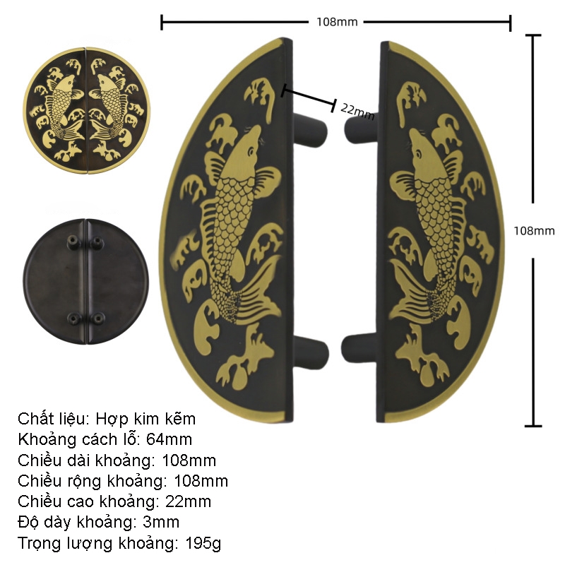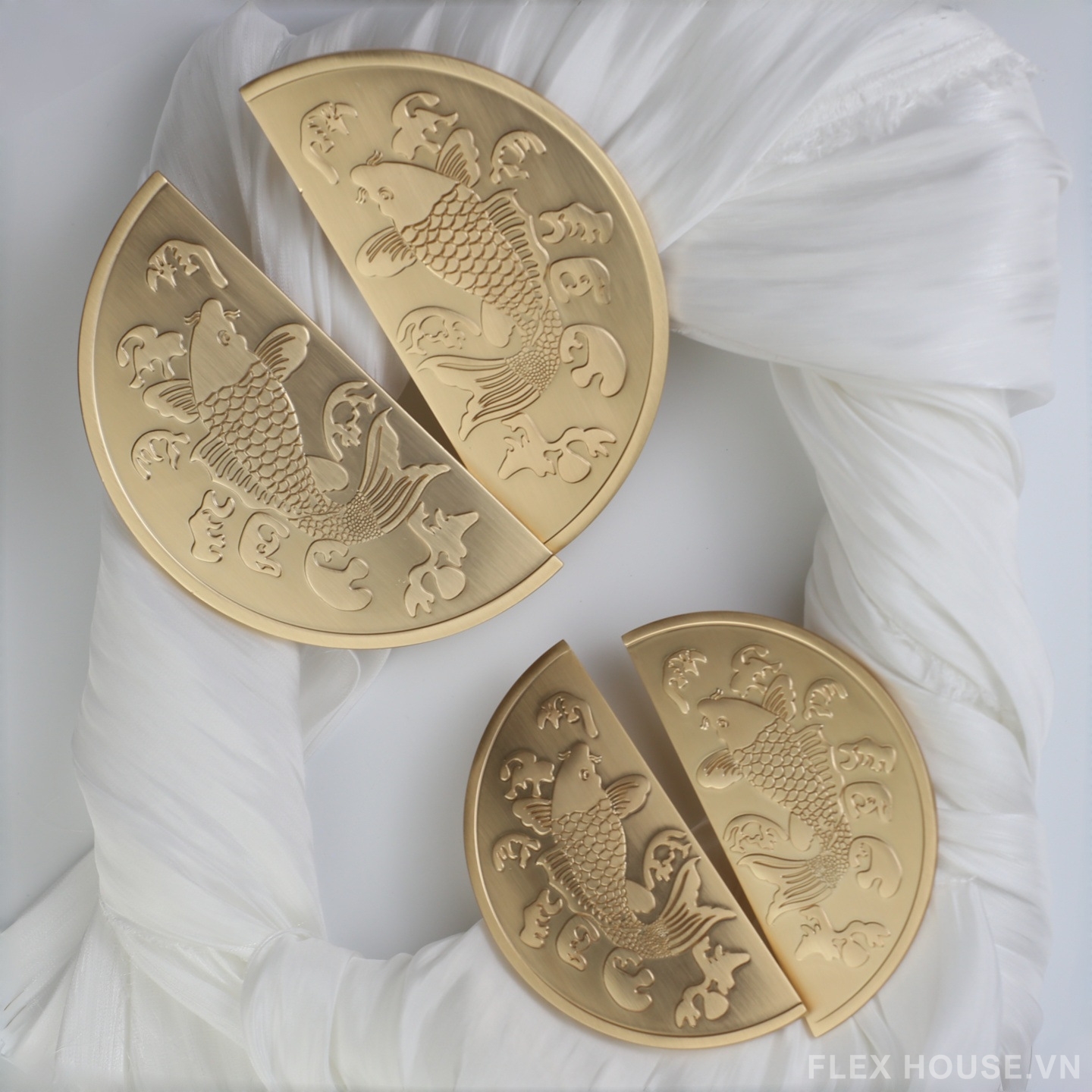 Tay nắm tủ bán nguyệt hình cá chép nghệ thuật JC6148 là điểm nhấn trang trí tinh tế cho các hệ tủ gỗ cao cấp, mang đậm hơi thở Á Đông và ý nghĩa phong thủy cát tường. Thiết kế bán nguyệt đối xứng, khi lắp đôi tạo thành hình tròn hoàn chỉnh, nổi bật với họa tiết cá chép uốn lượn giữa sóng nước – biểu tượng của tài lộc, thịnh vượng và sự hanh thông trong cuộc sống.
