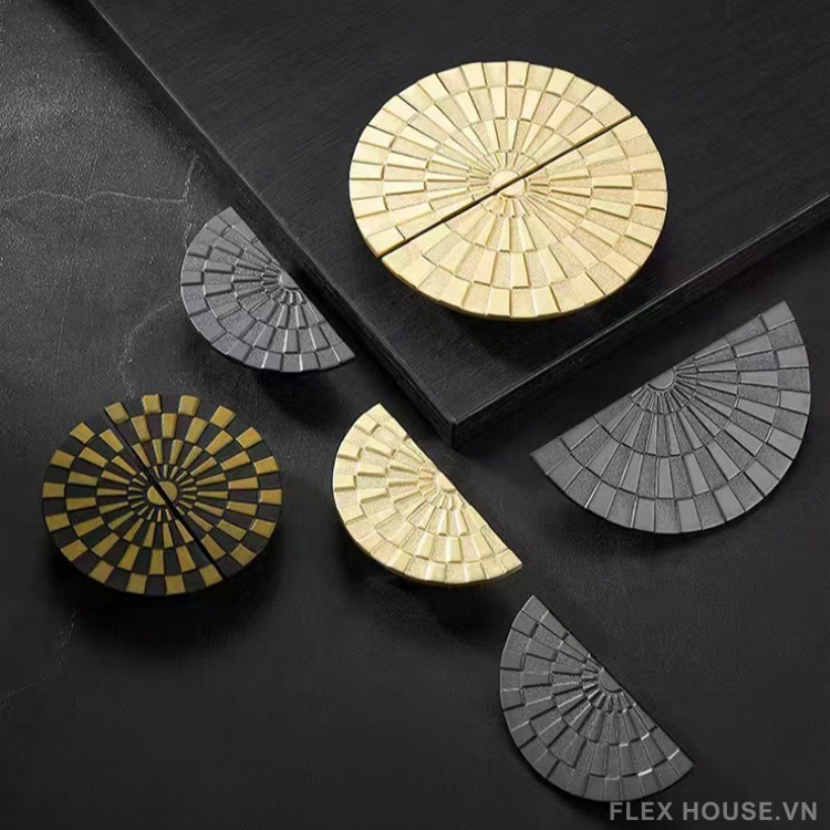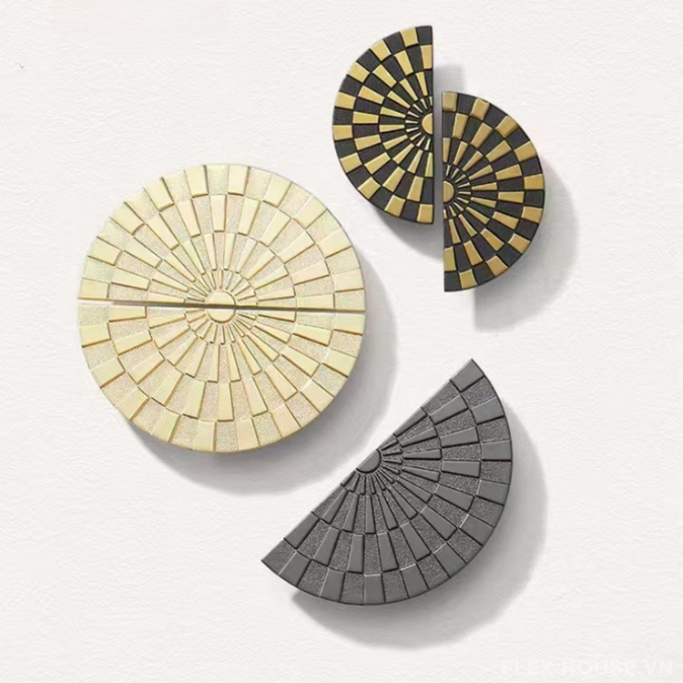 Tay nắm tủ bán nguyệt Nhật Quang HJ9179 là mẫu tay nắm trang trí cao cấp mang đậm dấu ấn nghệ thuật hình khối, lấy cảm hứng từ ánh sáng mặt trời tỏa tâm. Thiết kế bán nguyệt với các mảng vân xếp lớp đều đặn tạo hiệu ứng thị giác mạnh mẽ, giúp cánh tủ trở nên nổi bật và khác biệt ngay từ ánh nhìn đầu tiên.