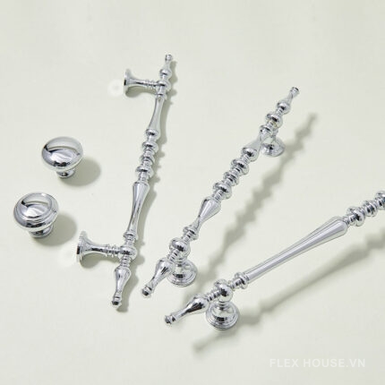 Phong cách tân cổ điển: Tay nắm mạ vàng, đồng hoặc có hoa văn chạm khắc.
