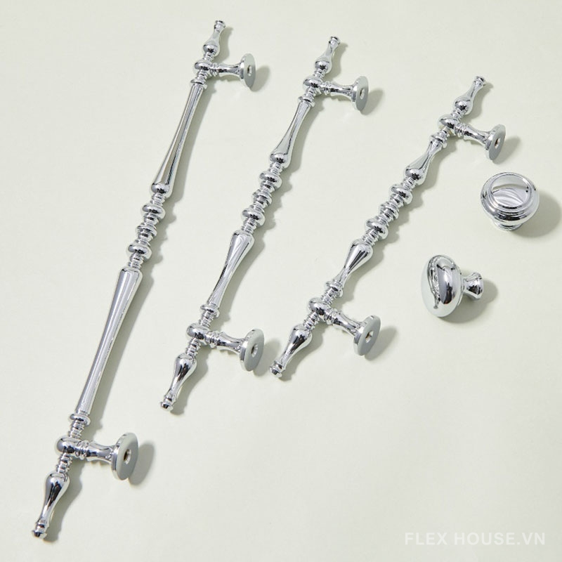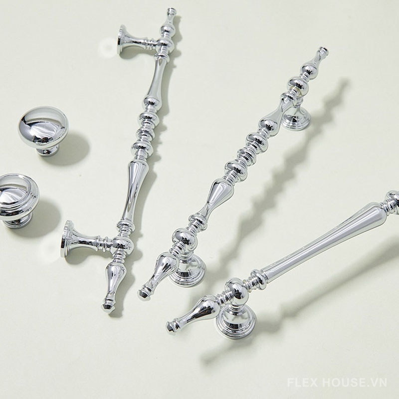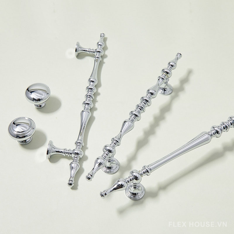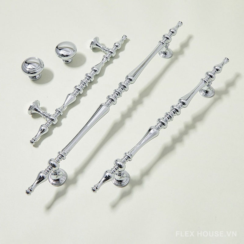 Tay nắm tủ đồng thau màu bạc châu Âu cao cấp PALO6730 mang đậm hơi thở cổ điển châu Âu, là điểm nhấn sang trọng giúp nâng tầm những không gian nội thất cao cấp. Thiết kế tay nắm dáng dài thanh mảnh, tạo hình đối xứng với các chi tiết bo tròn mềm mại và đường phào nổi tinh xảo, gợi liên tưởng đến phong cách hoàng gia – tân cổ điển châu Âu đầy quý phái.