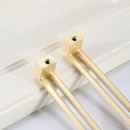 Tay nắm tủ hợp kim kẽm chữ U màu vàng ANA6721 là bộ sưu tập tay nắm tủ màu vàng có thiết kế hiện đại tối giản với phần tay cầm kiểu dáng chữ U có góc vuông được bo tròn mềm mại được thiết kế dạng hai thanh kép song song. Sản phẩm được chế tác từ hợp kim kẽm, bề mặt được hoàn thiện với công nghệ mạ điện hóa tiên tiến bảo đảm cho tay nắm tủ bền hơn, giữ màu lâu hơn và chống ăn mòn hiệu quả. Phần tay nắm cứng cáp, màu sắc sáng bóng, bề mặt trơn nhẵn giúp bạn cầm vào thoải mái mà không bị cộm tay.