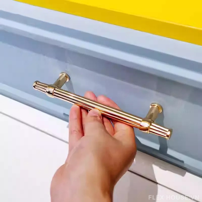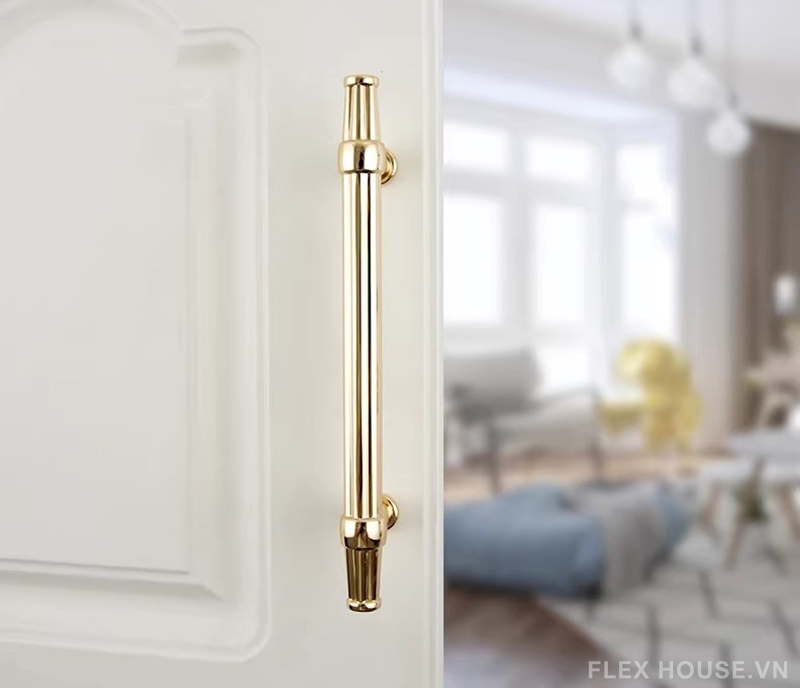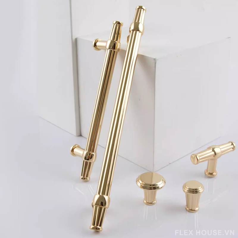 Sản phẩm được chế tác từ hợp kim kẽm cao cấp, có độ bền cao, khả năng chống oxy hóa và hạn chế ăn mòn trong quá trình sử dụng. Bề mặt hoàn thiện với tông màu vàng ánh kim sang trọng giúp tăng tính thẩm mỹ và tạo vẻ đẹp nổi bật cho tủ bếp, tủ quần áo hay các hệ tủ trang trí.