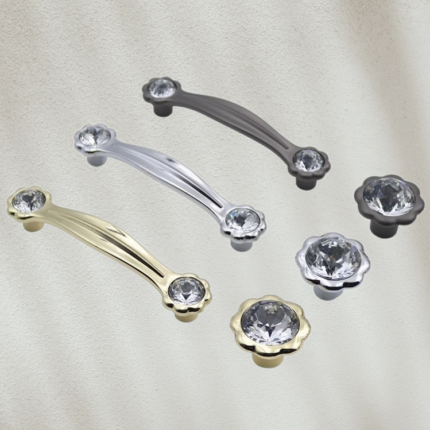 Tay nắm tủ hợp kim pha lê hình bông hoa CT9007 là bộ tay nắm đẹp cho cánh tủ, tôn vinh thêm không gian nội thất tủ gỗ như tay nắm tủ bếp; tay nắm tủ quần áo, tay nắm ngăn kéo tủ với phong cách sang trọng, hiện đại. Tay nắm tủ bằng pha lê là sự lựa chọn tuyệt vời cho các loại ngăn kéo và bàn trang điểm, tủ rượu…