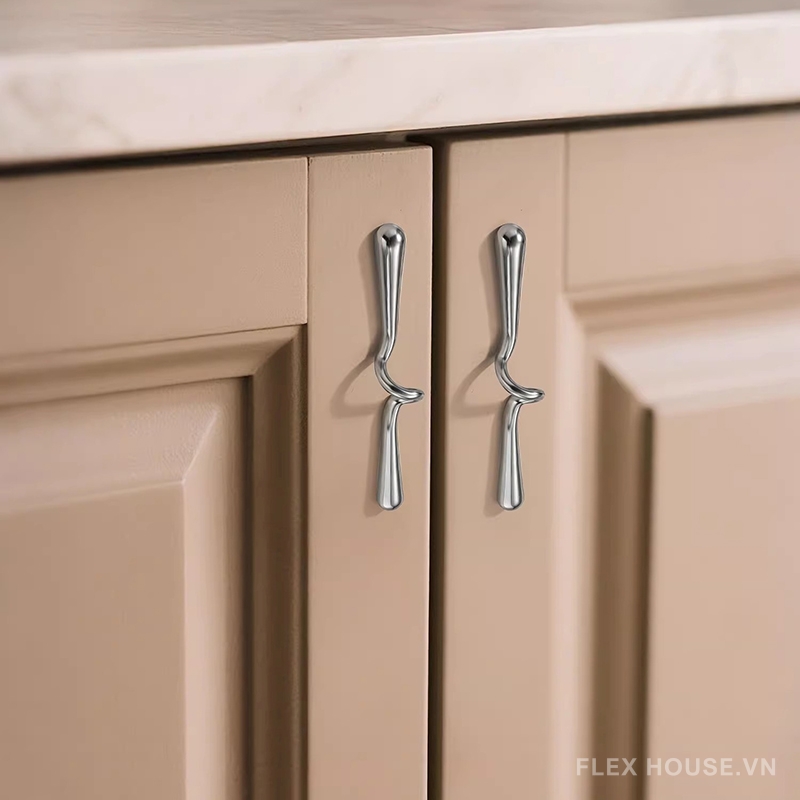 Tay nắm tủ YJ5529 mang thiết kế thanh mảnh, uốn lượn nghệ thuật đậm chất Phong cách Pháp – sang trọng, tinh tế và đầy tính thẩm mỹ. Dáng tay nắm được tạo hình mềm mại như một đường vẽ nghệ thuật, vừa nổi bật trên cánh tủ vừa tạo cảm giác thanh lịch cho tổng thể không gian.