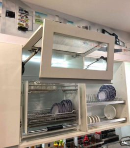 - Sản phẩm tối ưu không gian tường trên khi cánh tủ hoạt động khoảng trống trên cao sẽ được tận dụng để cánh cửa được nâng lên.