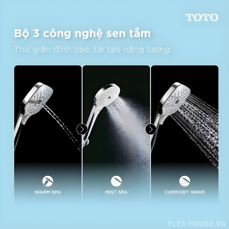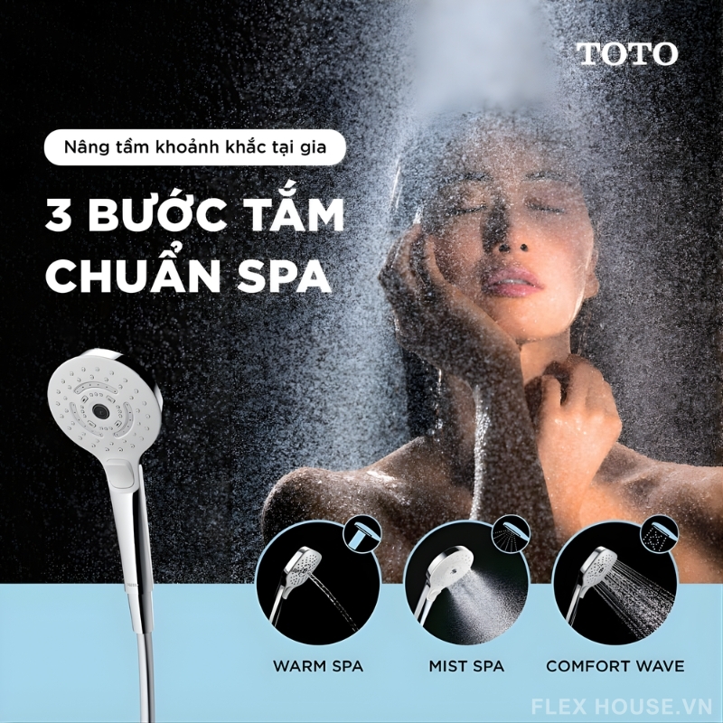 - Chức năng massage khi tắm 3 chế độ: Warm Spa, Comfort Wave, Mist Spa