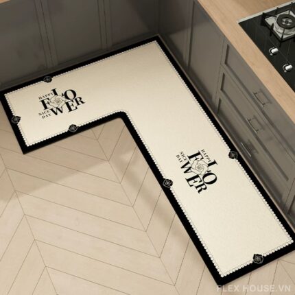 - Kiểu dáng: thảm bếp chữ L ôm góc tiện lợi