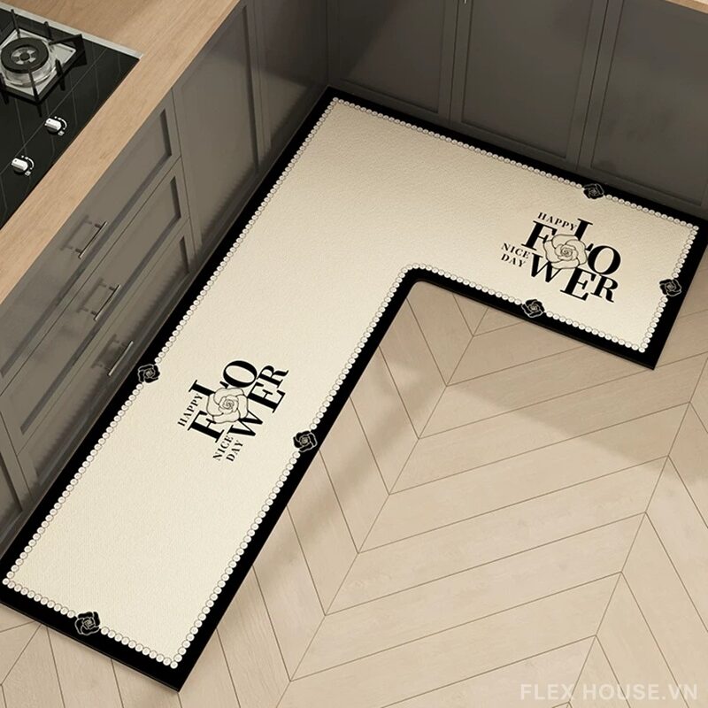- Kiểu dáng: thảm bếp chữ L ôm góc tiện lợi