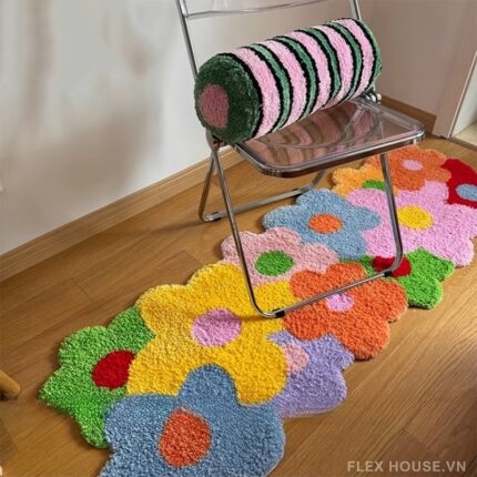 Nếu bạn đang tìm kiếm một món decor có thể khiến không gian trở nên tươi vui, rực rỡ và đầy cảm hứng, thì thảm trải sàn QZ5149 chính là lựa chọn hoàn hảo. Thiết kế thảm lấy cảm hứng từ những bông hoa nở rực rỡ, với bảng màu đa sắc nổi bật như vàng, cam, đỏ, xanh, hồng… tạo nên hiệu ứng thị giác sống động, mang lại cảm giác như một vườn hoa nghệ thuật trải dài trên sàn nhà.