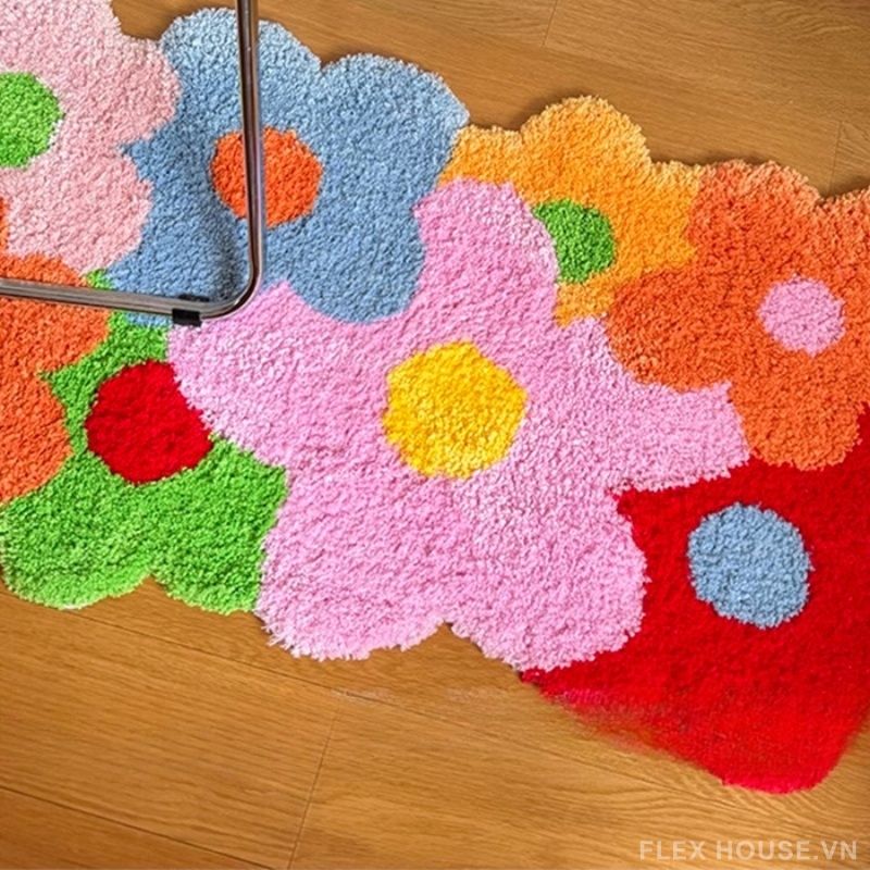 Nếu bạn đang tìm kiếm một món decor có thể khiến không gian trở nên tươi vui, rực rỡ và đầy cảm hứng, thì thảm trải sàn QZ5149 chính là lựa chọn hoàn hảo. Thiết kế thảm lấy cảm hứng từ những bông hoa nở rực rỡ, với bảng màu đa sắc nổi bật như vàng, cam, đỏ, xanh, hồng… tạo nên hiệu ứng thị giác sống động, mang lại cảm giác như một vườn hoa nghệ thuật trải dài trên sàn nhà.