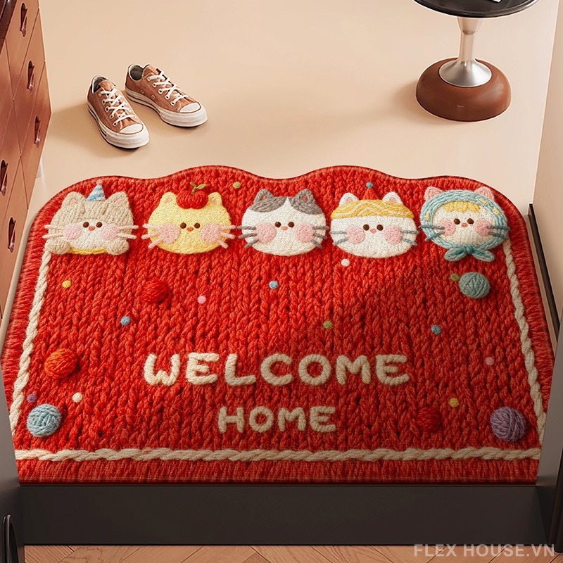 - Họa tiết: Những chú mèo hoạt hình, chữ “Welcome Home”