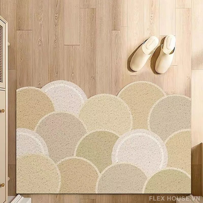Thảm chùi chân YY1530 nổi bật với họa tiết bong bóng tròn xếp lớp mềm mại, tạo hiệu ứng thị giác thú vị và hiện đại. Gam màu be – kem tự nhiên mang lại cảm giác nhẹ nhàng, dễ dàng hòa hợp với nhiều phong cách nội thất như Minimalist, Japandi hay Scandinavian.
