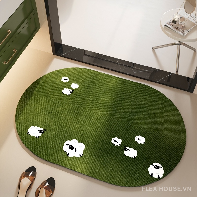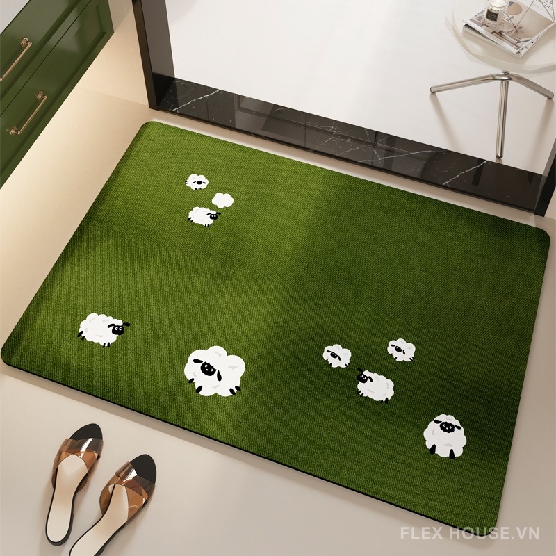 Hãy để Thảm chùi chân chống trượt Cừu đồng cỏ XF1426 mang màu xanh tươi mát cùng năng lượng tích cực đến ngôi nhà bạn! Đặt ngay hôm nay để tận hưởng cảm giác “dẫm mây – bước êm” mỗi ngày, vừa sạch sẽ vừa dễ thương đến khó cưỡng!