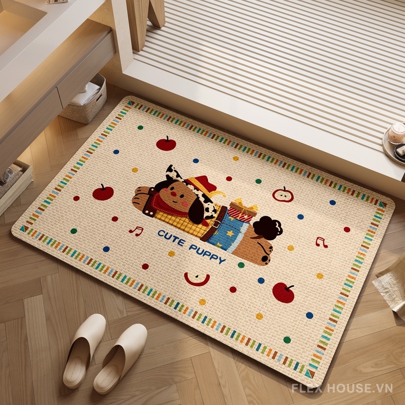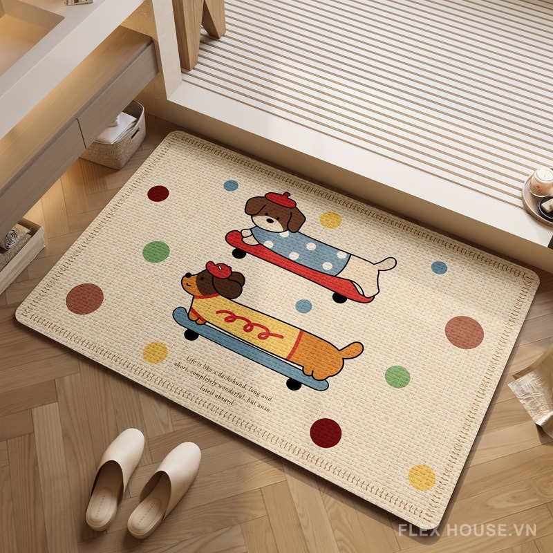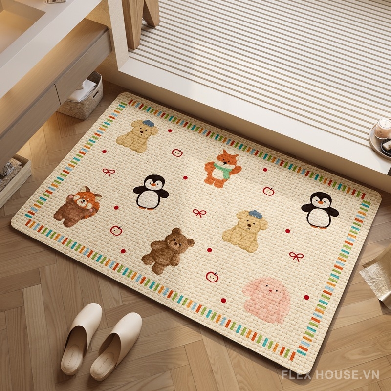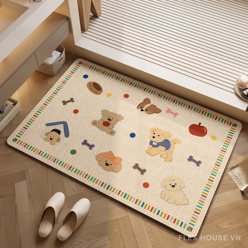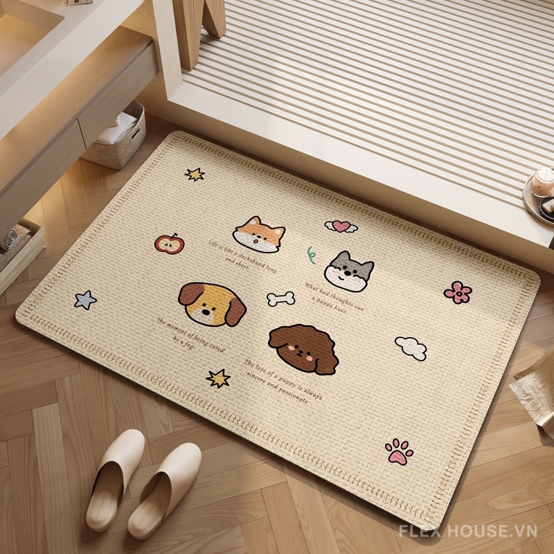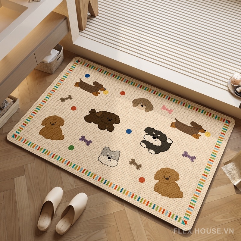 Với họa tiết thú cưng dễ thương, tông màu be nhẹ nhàng và đường viền bo tinh tế, sản phẩm không chỉ là thảm chùi chân thông thường mà còn là một điểm nhấn decor xinh xắn cho không gian sống, phù hợp với gia đình có trẻ nhỏ hoặc yêu thích phong cách dễ thương, hiện đại.
