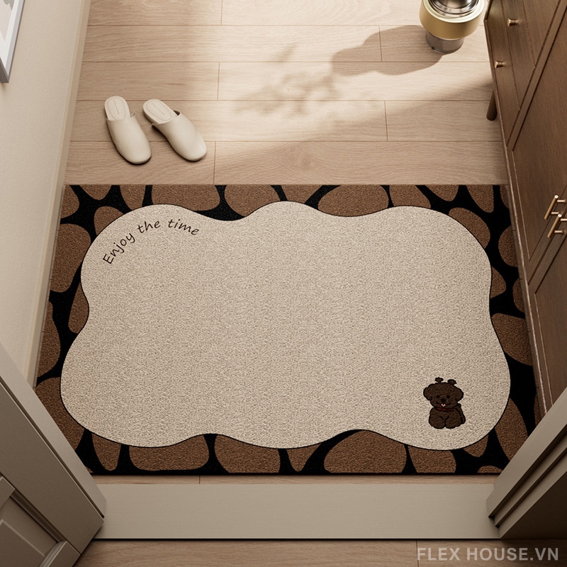 Không chỉ giúp giữ bụi bẩn ở lại ngoài cửa, thảm PVC YY9081 còn mang đến vẻ dễ thương với họa tiết gấu nhỏ và đường viền mềm mại, giúp không gian lối vào trở nên thân thiện và ấm áp hơn. Đây là lựa chọn lý tưởng cho căn hộ, nhà phố, cửa hàng hoặc ban công.