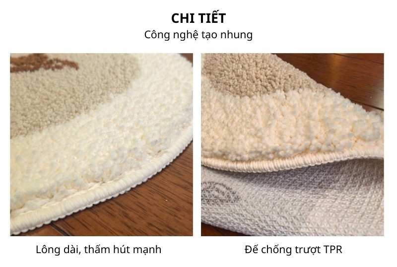 Ứng dụng công nghệ flocking tạo nhung hiện đại, bề mặt thảm có độ bông xốp dày dặn, lông dài mềm mại giúp thấm hút nước nhanh và giữ chân khô ráo ngay sau khi bước ra khỏi phòng tắm. Không chỉ là một tấm thảm chùi chân, JX1724 còn là điểm nhấn decor mang hơi thở Mỹ cổ điển tinh tế.