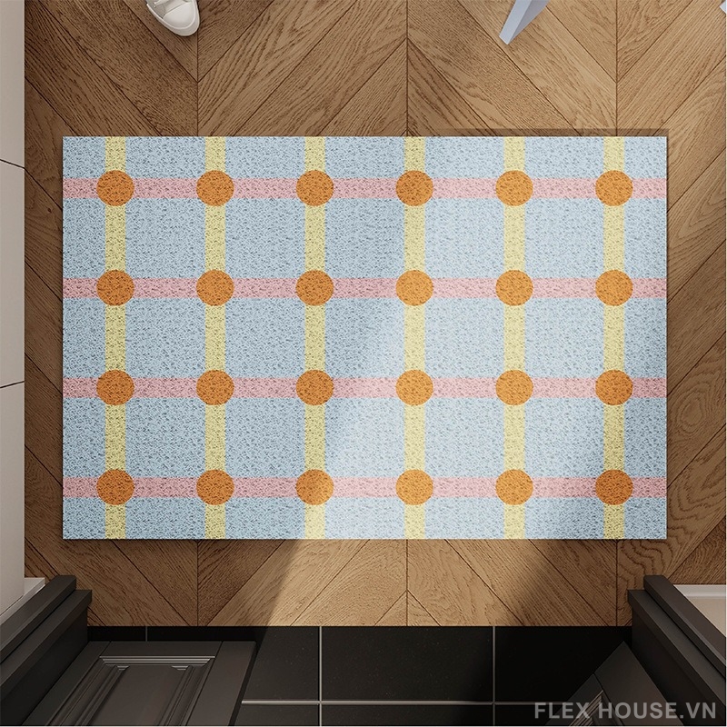 Lấy cảm hứng từ phong cách Memphis – trường phái thiết kế nổi bật với hình học vui nhộn và màu sắc tươi sáng, thảm chùi chân SH1093 mang đến một góc vào nhà đầy năng lượng tích cực. Họa tiết ô caro kết hợp chấm tròn được sắp xếp có nhịp điệu, vừa ngẫu hứng vừa có trật tự, tạo cảm giác hiện đại nhưng không hề khô cứng.