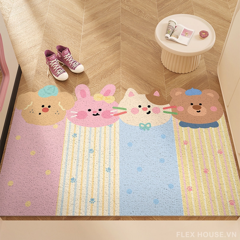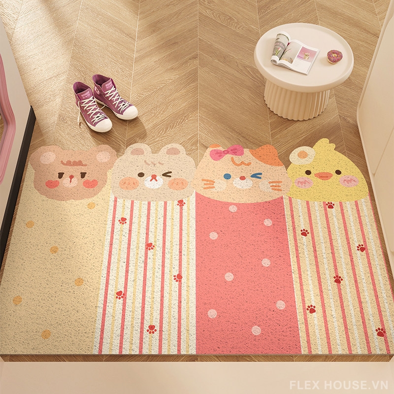 Thảm PVC sợi rối SH7869 chính là giải pháp tối ưu giúp giữ lại bụi bẩn ngay từ bước chân đầu tiên, đồng thời mang đến một góc cửa ra vào sạch sẽ – an toàn – cực kỳ dễ thương với họa tiết Little Bear sinh động.