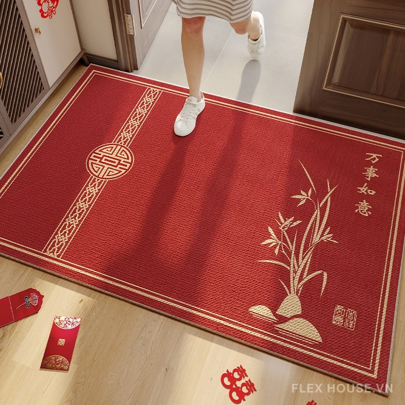 - Chữ “Vạn Sự Như Ý” – lời chúc an lành: Mỗi bước qua thảm là lời cầu chúc thuận lợi, may mắn và bình an cho cả gia đình.