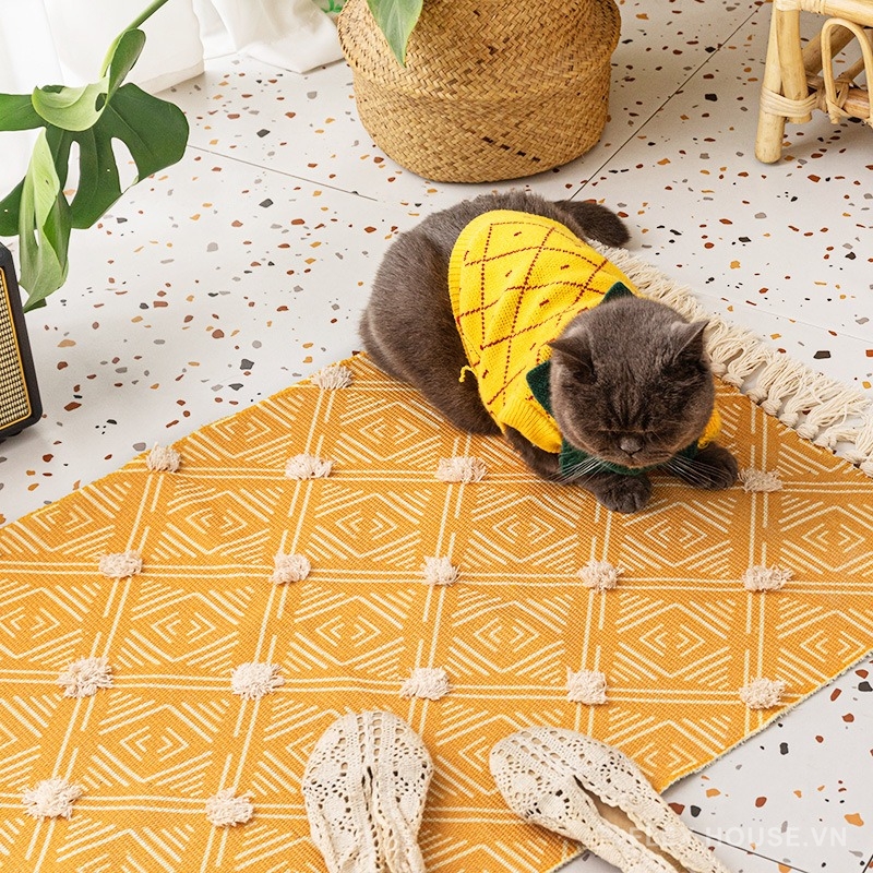 *Thảm dệt cotton lanh hình học lặp tua rua Boho XF3892.02