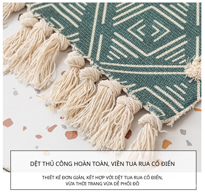 Đôi nét về Thảm dệt cotton lanh hình học lặp tua rua Boho XF3892