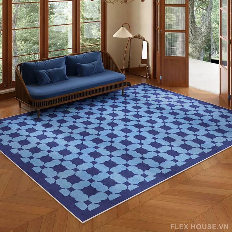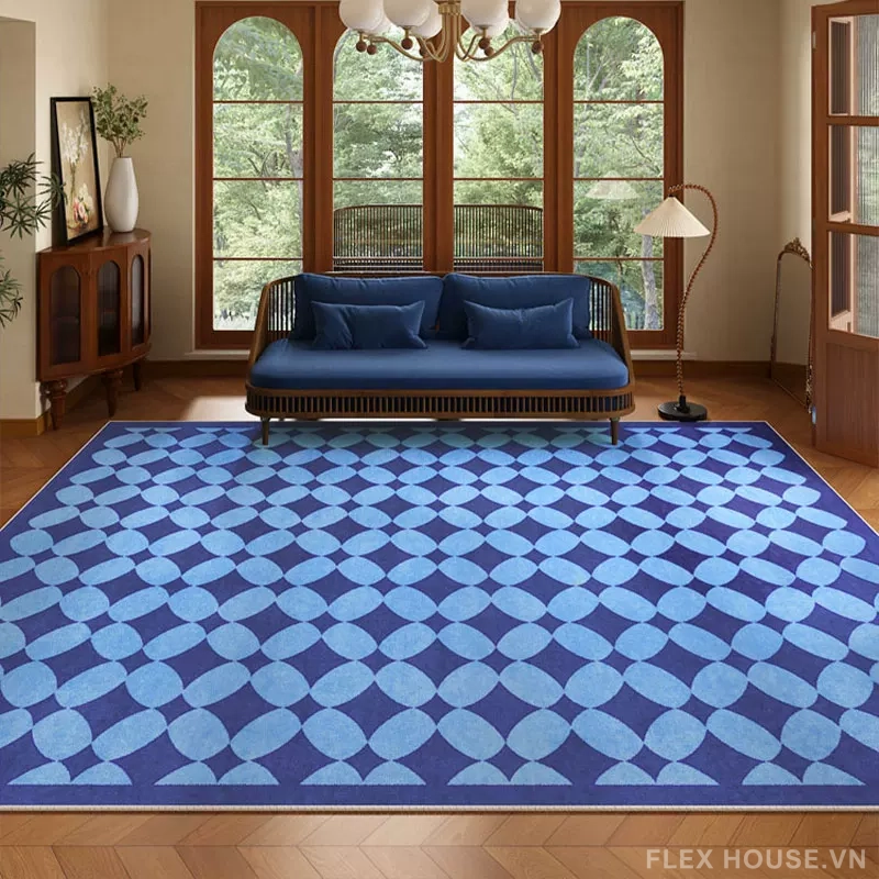 Thảm hoa văn HY9690 chính là giải pháp hoàn hảo. Với họa tiết đan kết hình học lặp lại đầy nhịp điệu trên nền xanh hiện đại, sản phẩm mang đến hiệu ứng thị giác cuốn hút, giúp không gian trở nên hài hòa, có chiều sâu và đậm chất thiết kế hơn ngay tức thì.