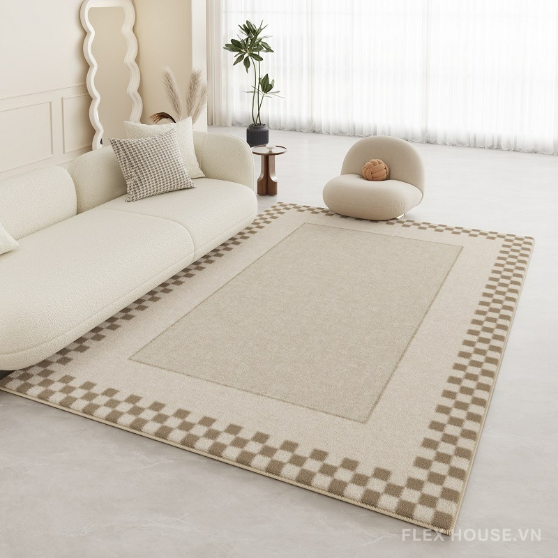 Đôi nét về Thảm lông ngắn trải sofa bàn trà viền caro XF7418