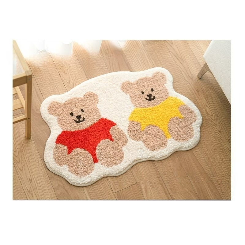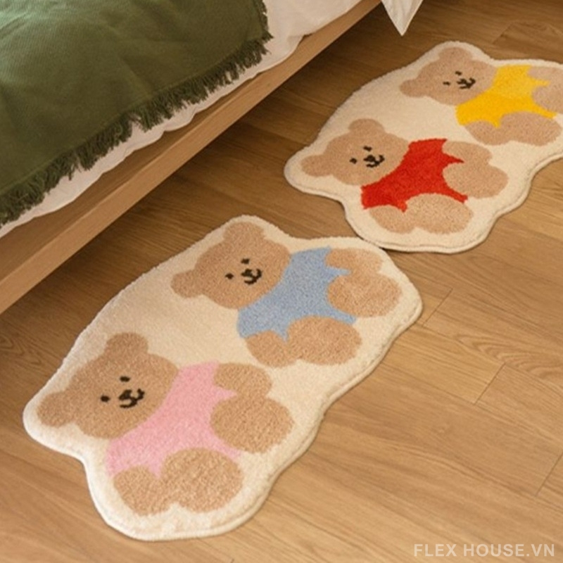 Thảm trải sàn cho trẻ em YY4806 mang phong cách Cartoon – Creamy Style Hàn Quốc, nổi bật với họa tiết các chú gấu bông đáng yêu mặc áo pastel. Thiết kế tạo hình bất đối xứng mềm mại, màu sắc nhẹ nhàng giúp không gian phòng ngủ hoặc góc chơi của bé trở nên ấm áp, vui tươi và gần gũi hơn.