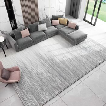 Thảm lót sàn phòng khách phong cách Bắc Âu hiện đại YN-XKK69 có thiết kế đơn giản, tinh tế nhưng không kém phần sang trọng. Màu sắc đen trắng chuyển màu mang đến cảm giác hiện đại, trẻ trung cho không gian phòng khách. Sản phẩm thích hợp với nhiều không gian phòng khách khác nhau, từ phòng khách nhỏ đến phòng khách lớn. Thảm có thể được sử dụng để trải toàn bộ sàn phòng khách hoặc trải ở một khu vực cụ thể như khu vực sofa, khu vực bàn trà,…