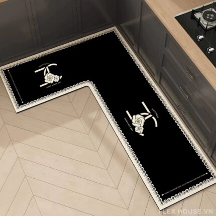 - Kiểu dáng: thảm bếp chữ L ôm góc tối ưu không gian