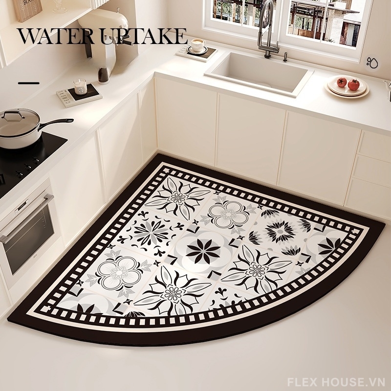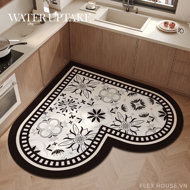 Không chỉ đẹp mắt, thảm nhà bếp chống trượt JX9554 còn là lựa chọn thực tế cho không gian bếp nhờ khả năng thấm hút nước nhanh, chống dầu mỡ và chống trượt mạnh mẽ. Bề mặt thảm hấp thụ nước trong vài giây, giúp sàn luôn khô ráo, giảm nguy cơ trơn trượt và mang lại cảm giác đứng nấu ăn thoải mái hơn mỗi ngày.