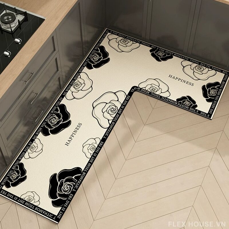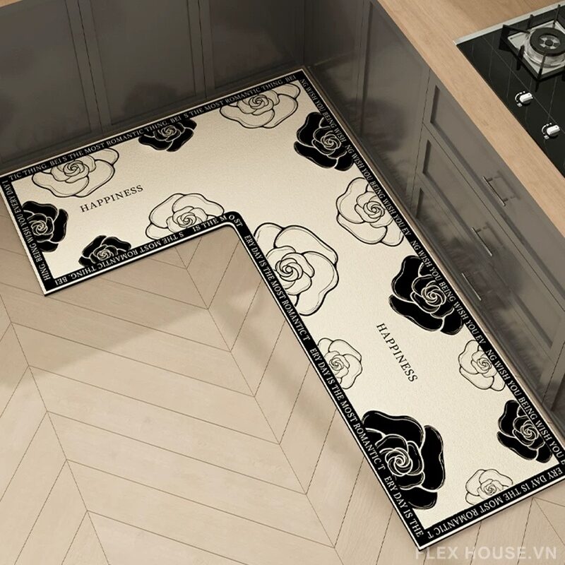 - Kiểu dáng: thảm bếp chữ L ôm góc tiện lợi