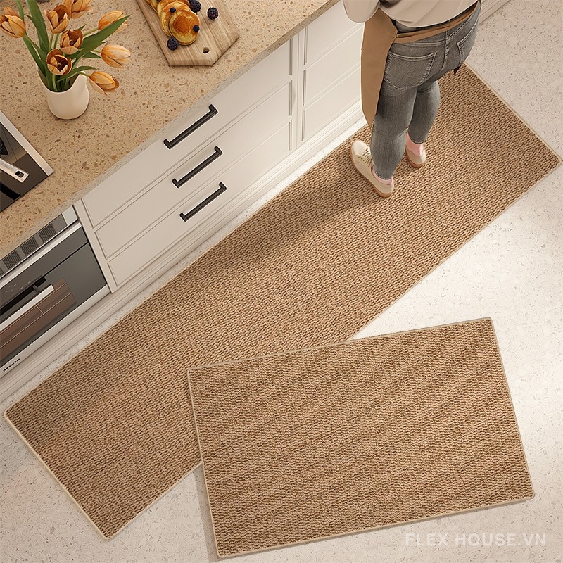 *Thảm nhà bếp giả sisal chống trượt siêu thấm hút XF1472.01 – Màu yến mạch