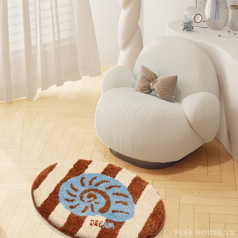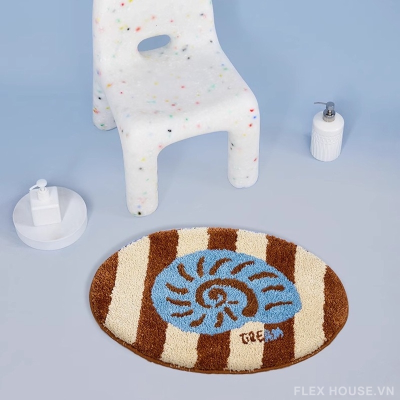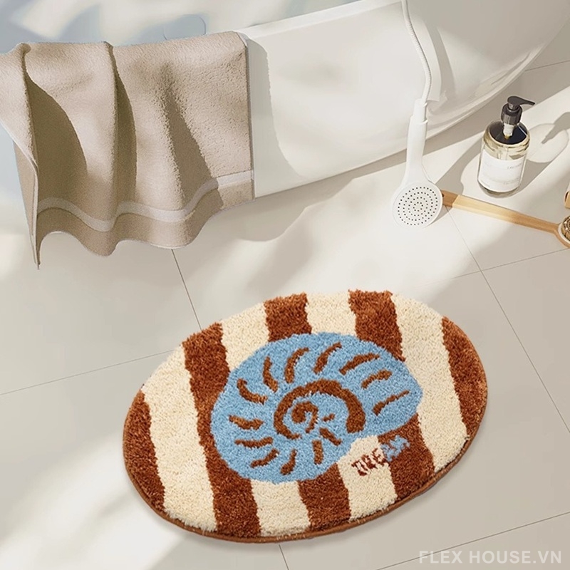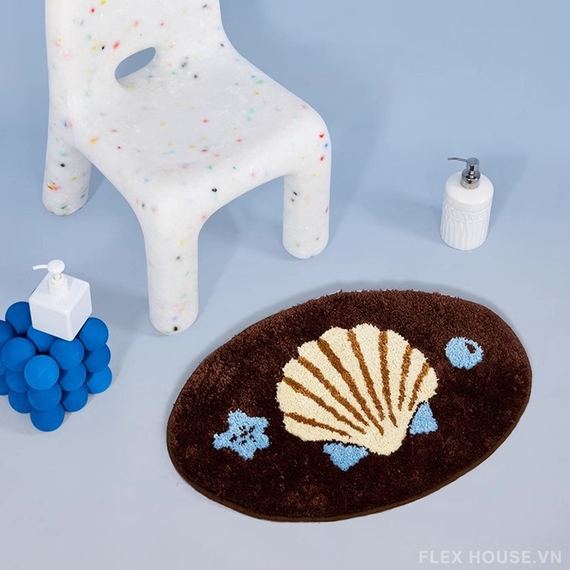 Nếu bạn yêu thích phong cách decor nhẹ nhàng, mang hơi thở của đại dương, thì thảm nhà tắm siêu thấm QZ1618 chắc chắn sẽ khiến không gian trở nên sinh động hơn. Thiết kế nổi bật với họa tiết vỏ sò, sao biển và san hô, gợi cảm giác như một góc biển nhỏ ngay trong phòng tắm. Tông màu nâu – kem – xanh pastel tạo nên tổng thể hài hòa, vừa ấm áp vừa tươi mát.