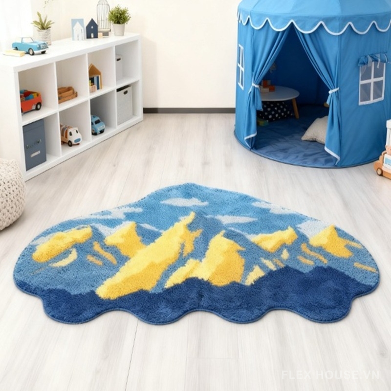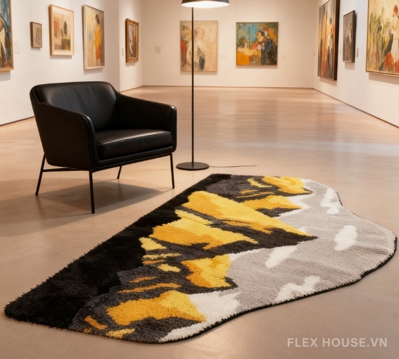 Thiết kế mang tinh thần Landscape Art – phong cảnh nghệ thuật hiện đại, phù hợp với những không gian cá tính như phòng ngủ, phòng làm việc, studio sáng tạo hoặc nhà phong cách tối giản – đương đại. SH2751 không chỉ là một tấm thảm trải sàn mà còn là một “bức tranh núi non” giúp không gian trở nên ấn tượng, có điểm nhấn rõ ràng và gu thẩm mỹ riêng biệt.