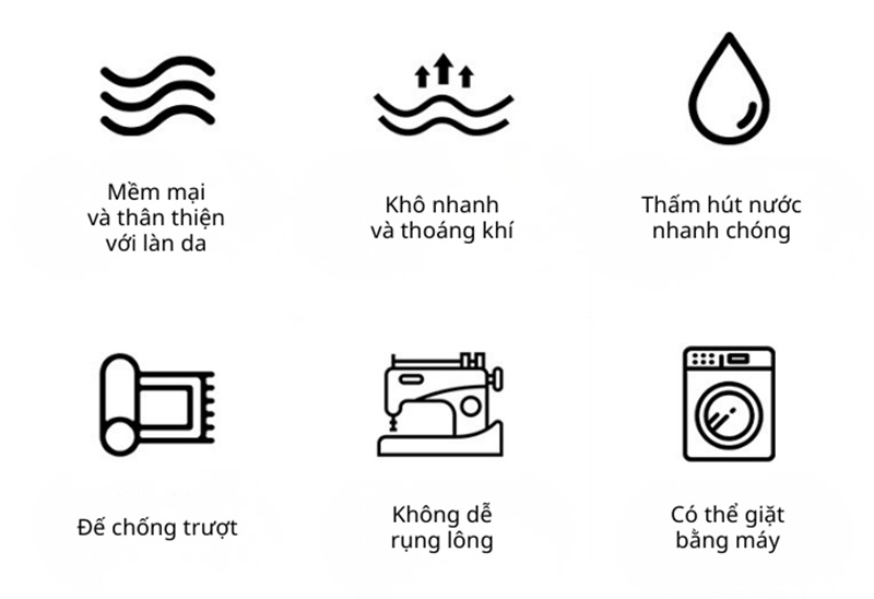 - Tính năng: Thấm hút nước nhanh, khô thoáng, không dễ rụng lông