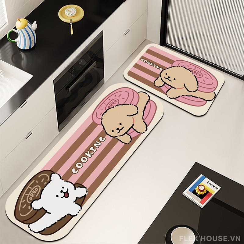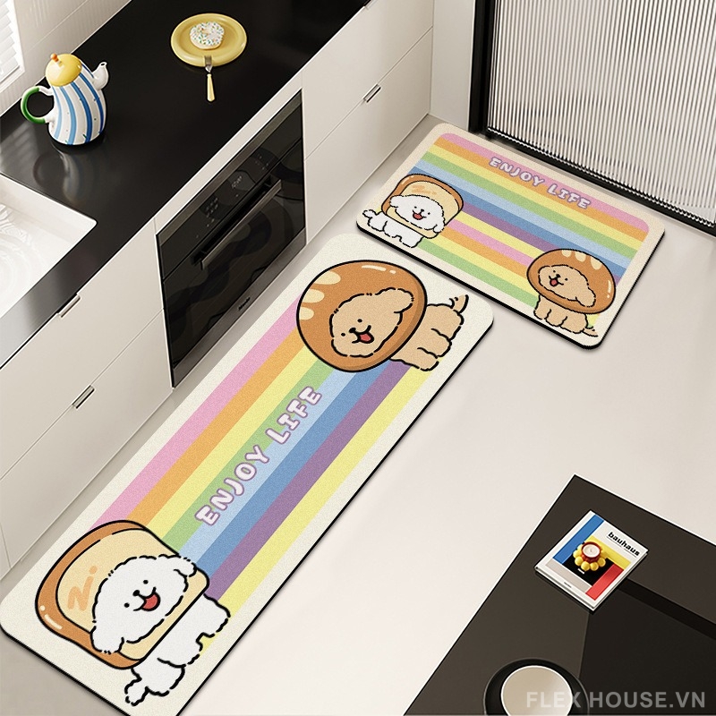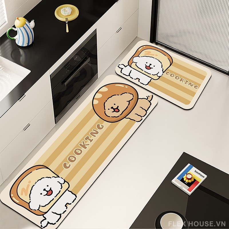 Không chỉ đẹp mắt, thảm trải bếp JX5547 còn ứng dụng chất liệu tảo cát hiện đại, bề mặt mịn, hút nước nhanh, hạn chế bám bẩn. Đây là lựa chọn lý tưởng cho những ai yêu thích decor dễ thương nhưng vẫn đề cao sự tiện lợi, sạch sẽ trong sinh hoạt hàng ngày.