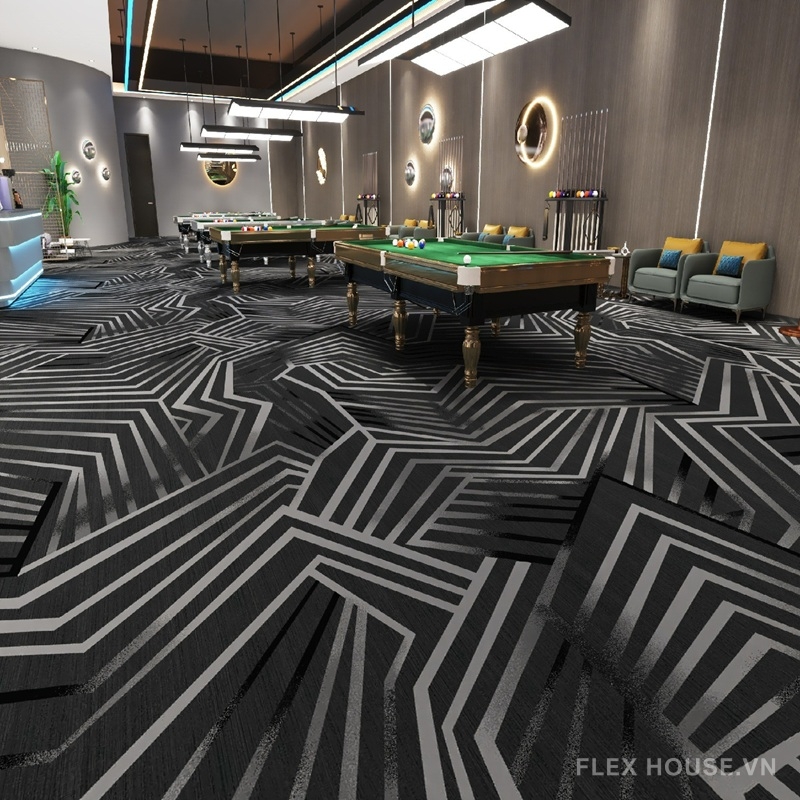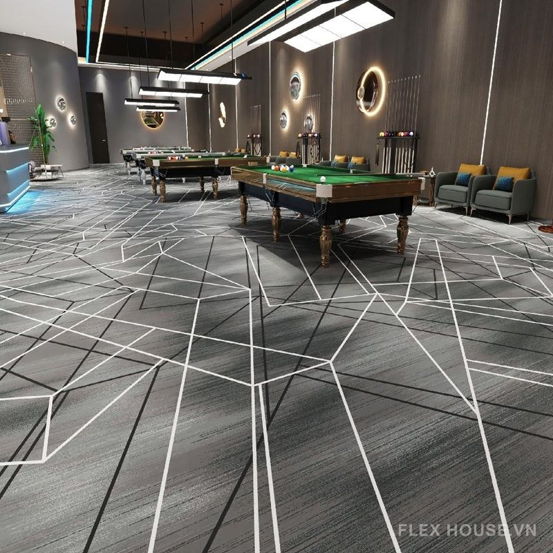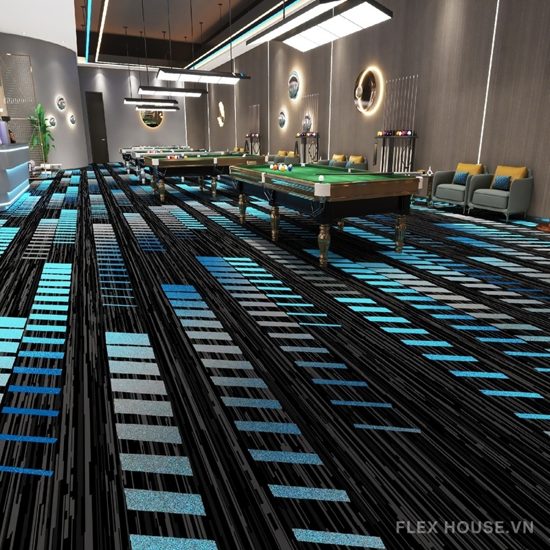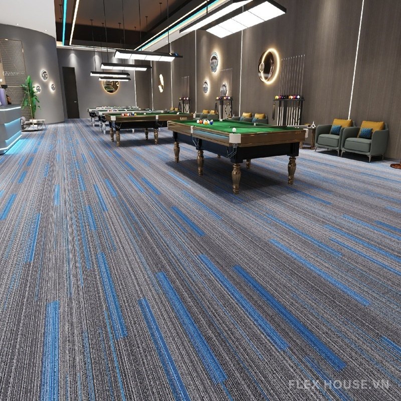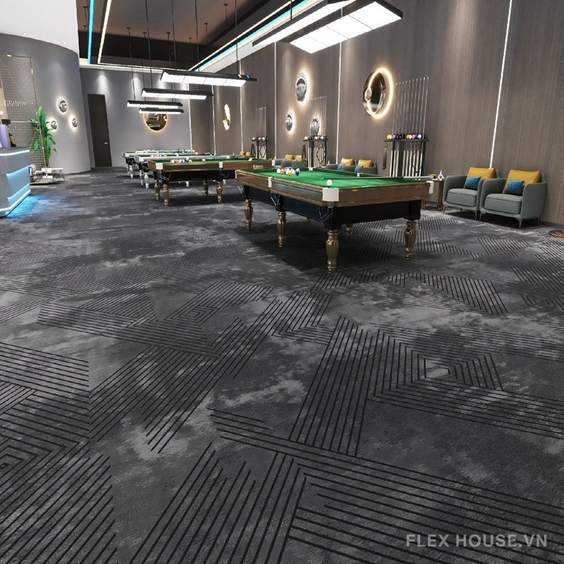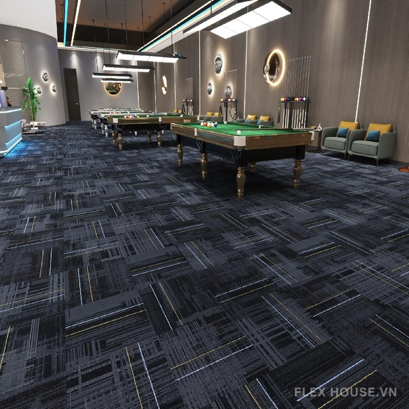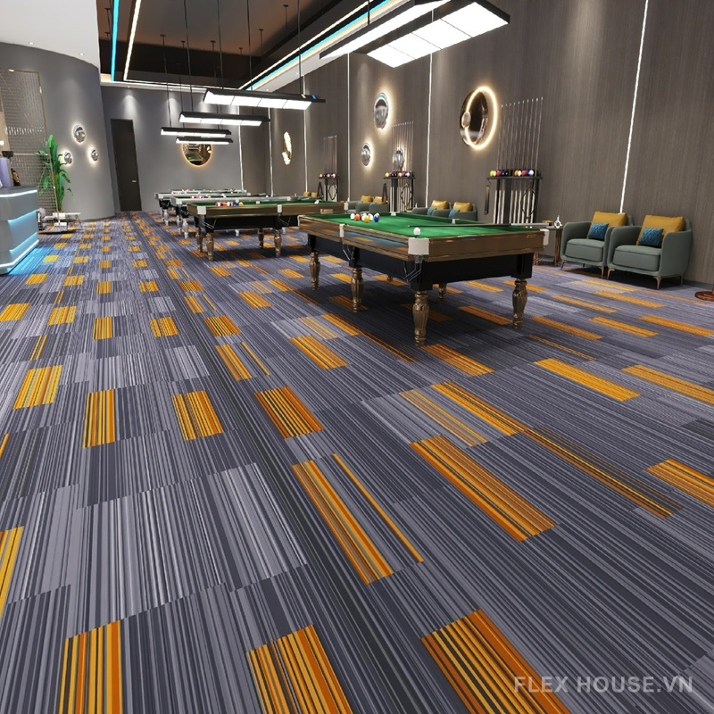 Thảm văn phòng chống cháy HY9638 phù hợp với các không gian tone xám, be, nâu hoặc xanh navy, khi kết hợp cùng đèn ánh vàng – nội thất kim loại hoặc gỗ veneer sáng màu sẽ tạo cảm giác ấm áp, hiện đại và chuyên nghiệp.