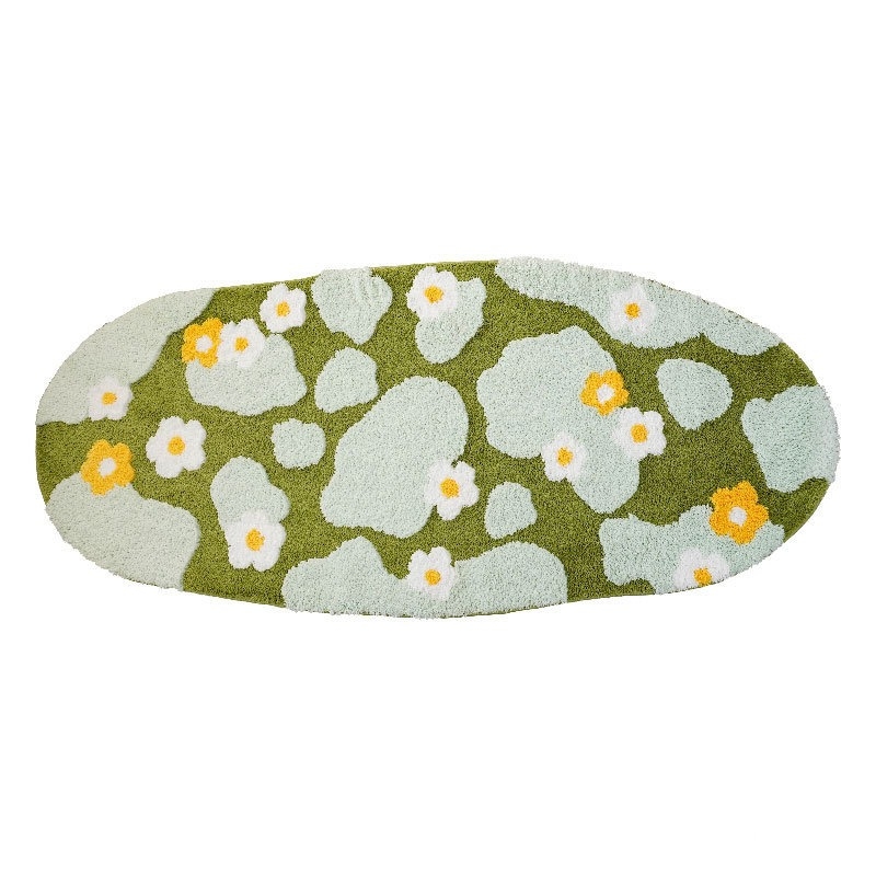 Lấy cảm hứng từ thảm thực vật tự nhiên trong rừng – nơi cỏ, rêu và hoa dại đan xen qua bốn mùa, thảm trang trí SH2757 mang đến cảm giác như một khu vườn nhỏ đang nở rộ ngay trong không gian sống. Các mảng màu xanh đậm – xanh nhạt được sắp xếp ngẫu hứng như địa hình tự nhiên, điểm xuyết hoa trắng – vàng dịu nhẹ, tạo nên bố cục mềm mại, thư giãn và đầy sức sống.