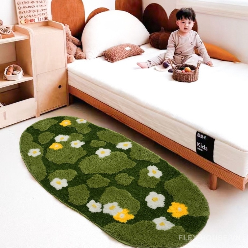 - Ứng dụng: Thảm trải sàn phòng bé, decor phòng khách, homestay, tiệm nail