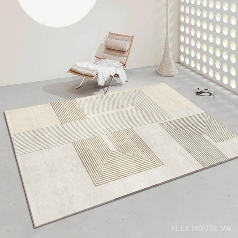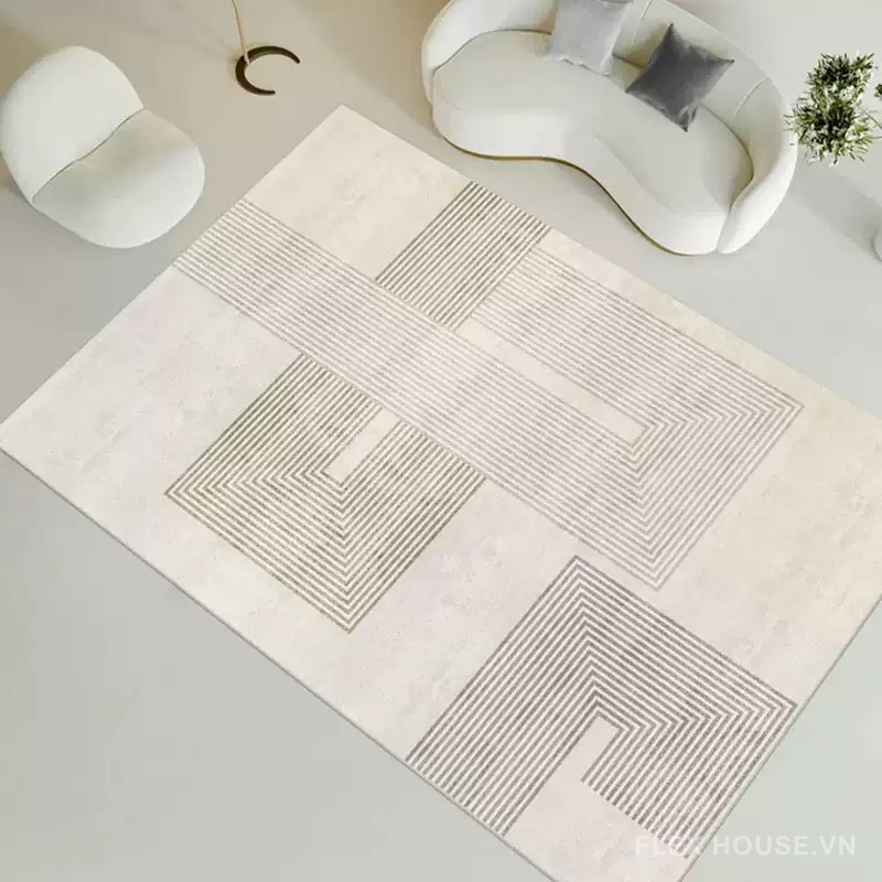 Thảm phòng khách hiện đại XF3100 là tuyên ngôn thẩm mỹ dành cho những không gian sống theo đuổi vẻ đẹp hình học đương đại. Các khối vuông và đường chữ L được sắp đặt có chủ đích, tạo nên bố cục lồng lớp tinh tế trên nền kem – be sáng thanh lịch. Không phô trương, thảm đóng vai trò như một lớp nền thời trang, nhẹ nhàng nâng đỡ toàn bộ không gian từ phòng khách, phòng ngủ đến studio mang tinh thần tối giản.