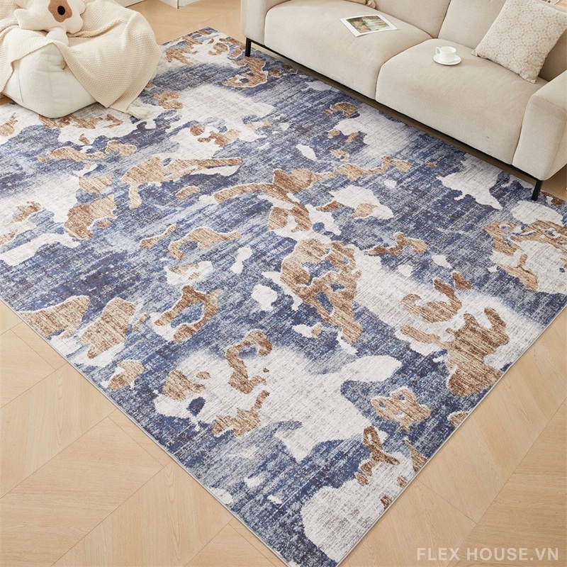 Đôi nét về Thảm trải sàn họa tiết trừu tượng tone xanh denim JX5863